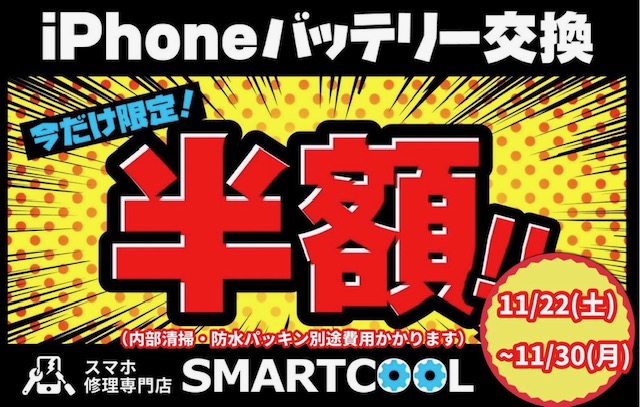 大好評iPhoneバッテリー交換半額イベント開催します!!