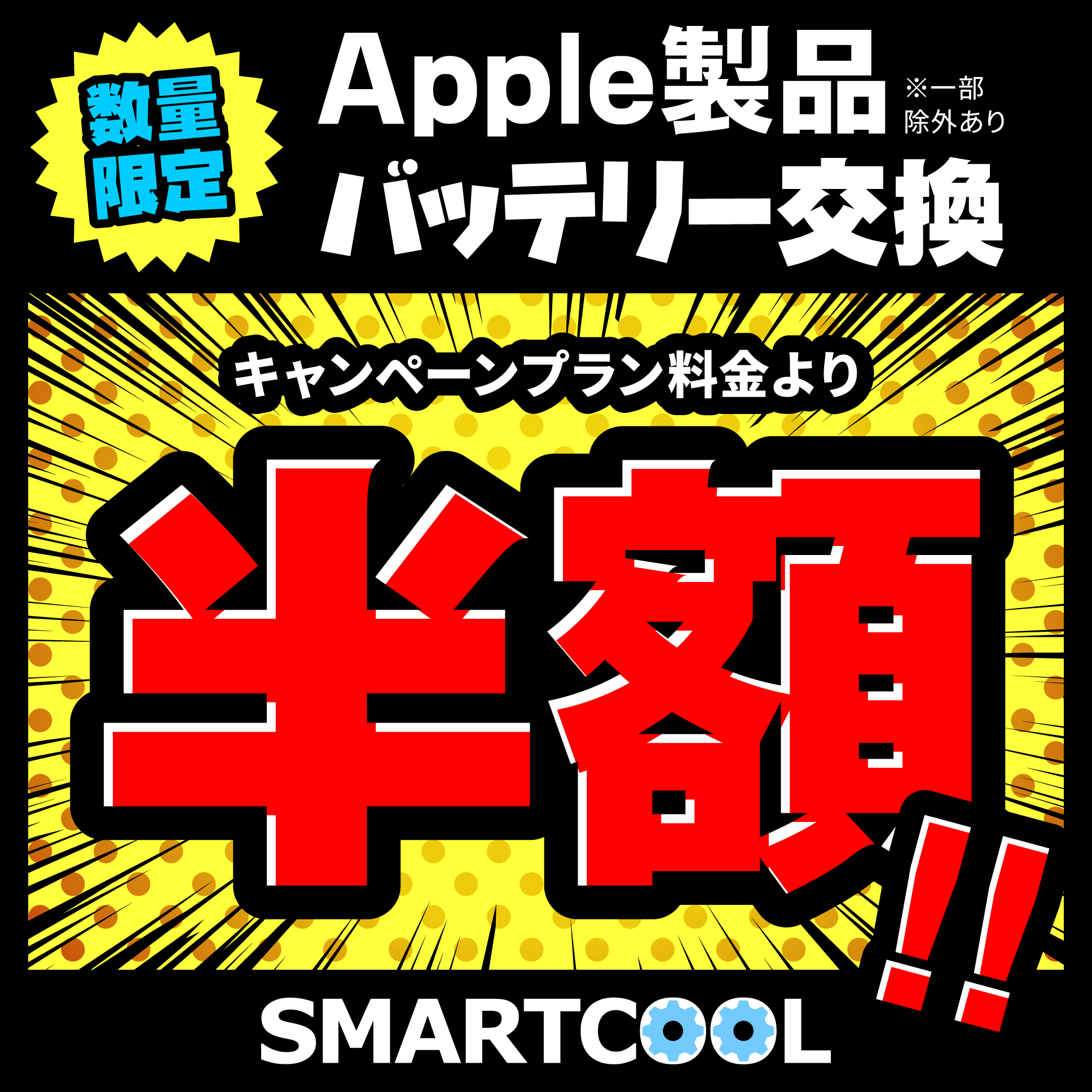 Apple製品バッテリー交換半額キャンペーンを開催いたします!